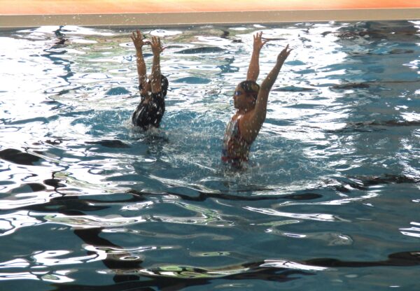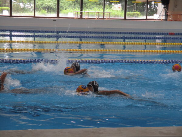 水球はずっと立ち泳ぎをしたままの状態で、ボールを操り、パスやゴールを行います。躍動感があるボールプレーが披露されました。
