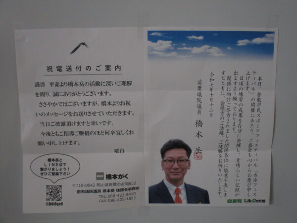 令和7年10月12日日曜日、第20回倉敷市民スポーツフェスティバル~水泳フェスティバル~が開催されました。