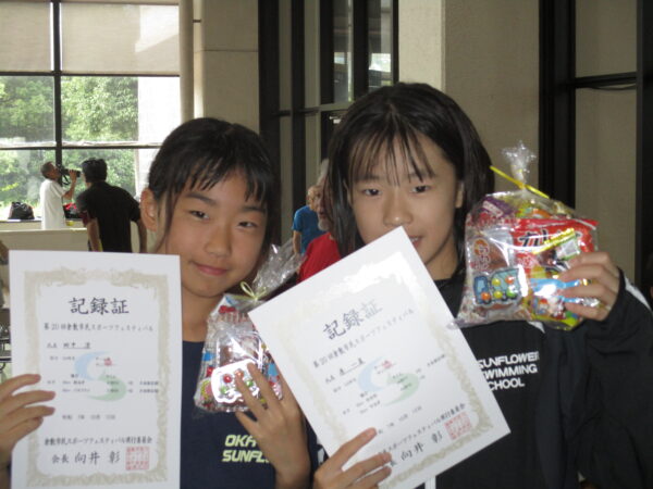 競泳記録会では、記録証が発行され自分の長水路(50mプール)での記録を認識されていました。