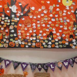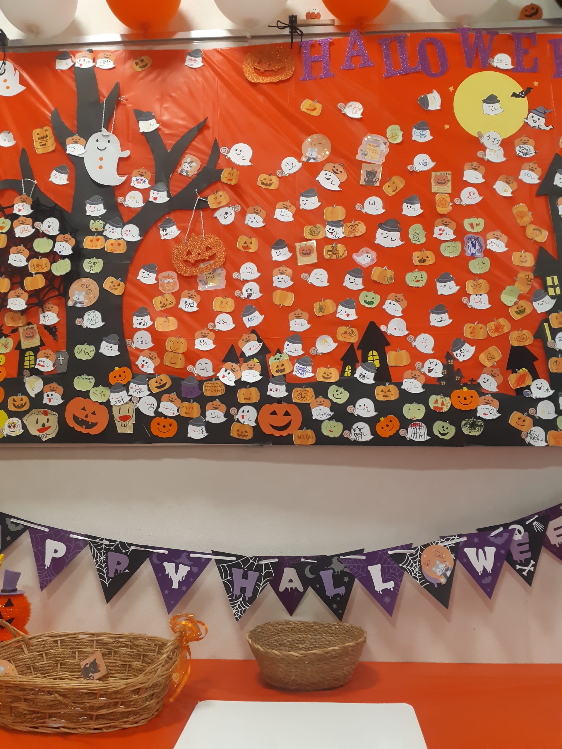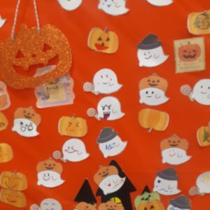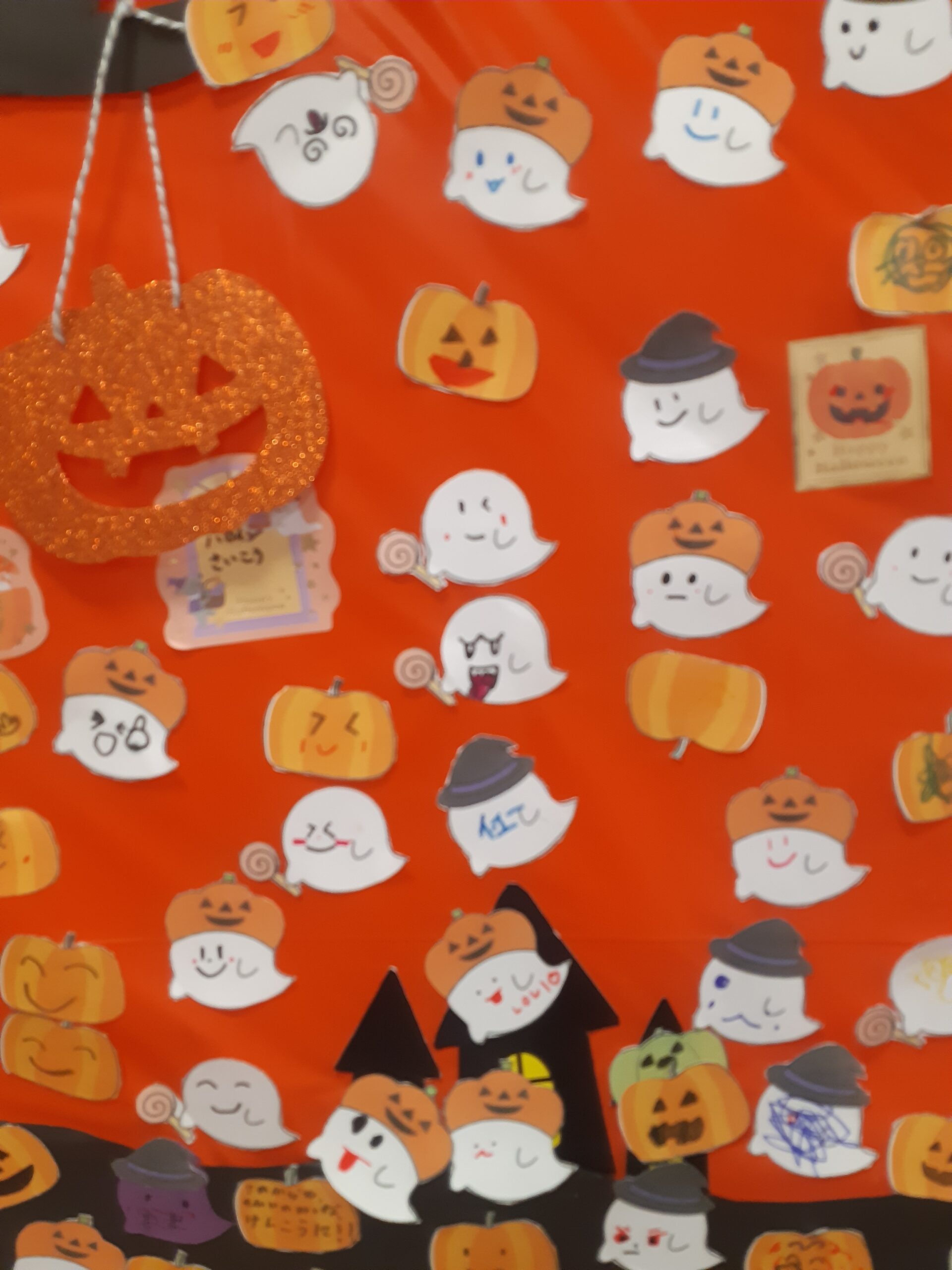 おばけの形のシートには、思っていることをなんでも書いて貼ってもらっています。