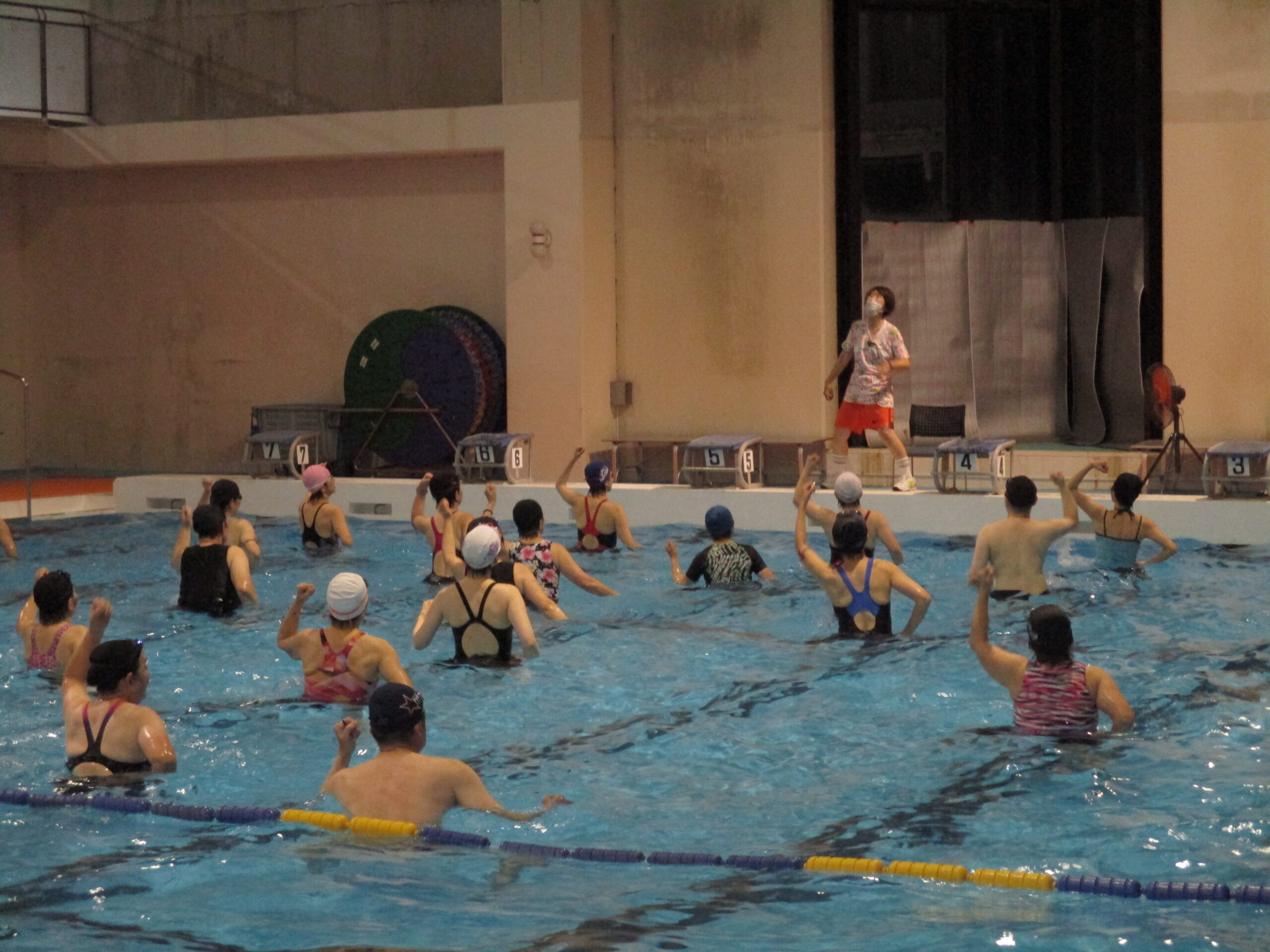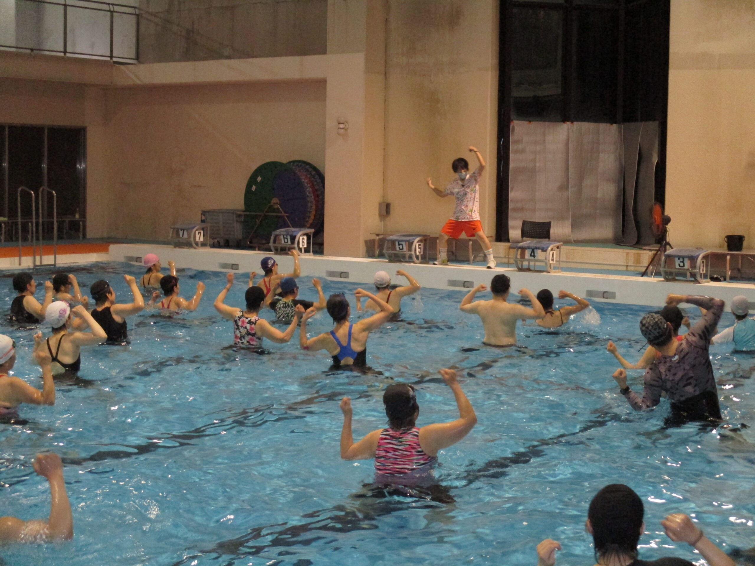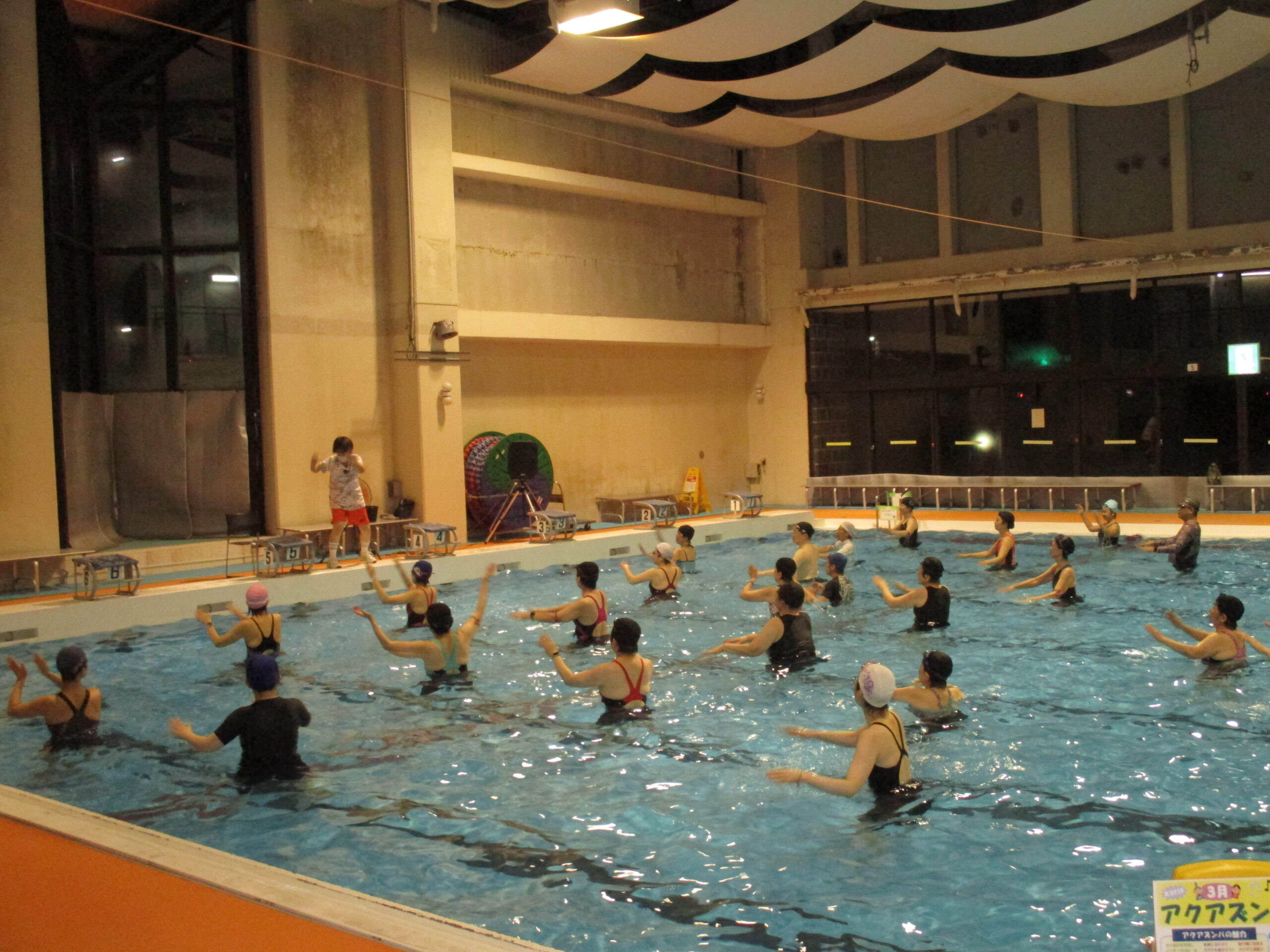 3月末に水泳センターが閉館のため、水泳センターでのアクアズンバの開催は、最後となりました!水音がザクザクザクと揃いながら動かれているのが圧巻でした。水しぶきを上げて、楽しい♪と運動して笑顔で帰っていただける教室が、参加者の皆さん、先生のご協力の上、開催することができました。