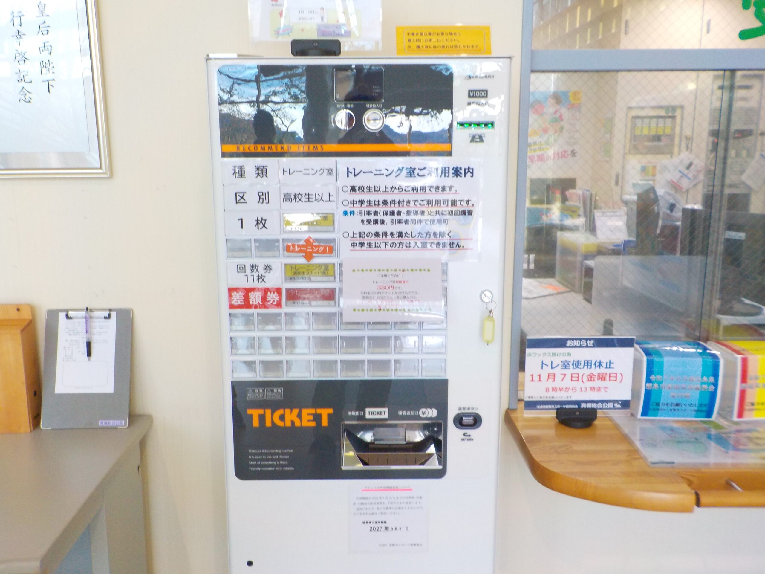 ※トレーニング室は券売機でチケットを購入の上、ご利用ください。(販売時間 8:30~22:00)