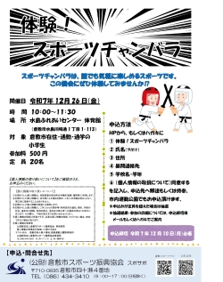 〇気象警報や天候状況により中止する場合は、決定次第、「倉敷スポーツナビ」にてお知らせします。