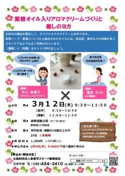 | 講師 | 木口 絵美子氏(アロマインストラクター)・窪津 さくみ(ヨガ講師) |