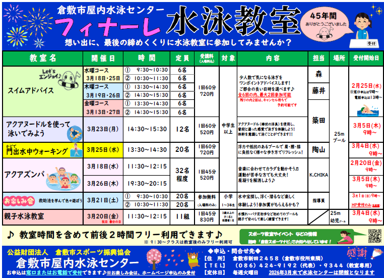 倉敷市屋内水泳センターは、令和8年3月31日(火)をもって、閉館となります。