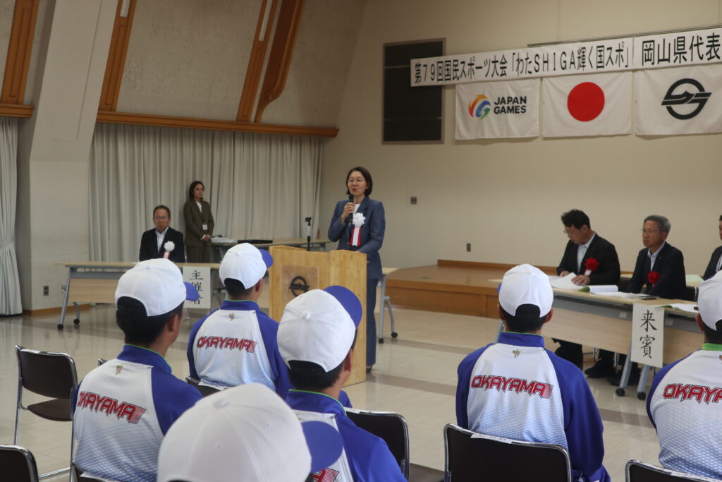 壮行式では、倉敷市をはじめ倉敷市議会、倉敷市スポーツ振興基金運営委員会、倉敷市スポーツ推進審議会、公益財団法人倉敷市スポーツ振興協会のみなさまが倉敷市関係選手団を激励されました。